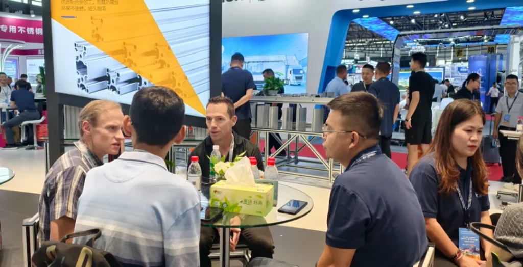 At this exhibition, Jinpeng Aluminum’s exhibits covered numerous key areas, including aluminum alloy building templates, mechanical equipment, industrial automation, automobiles, and solar energy.  In particular, the featured automation frame profiles and aluminum alloy building template profiles attracted considerable attention from both domestic and international visitors, with a constant stream of customers stopping to inquire and negotiate.