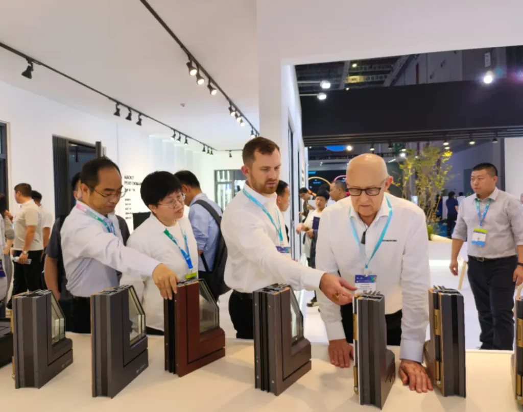 At this exhibition, Jinpeng Aluminum presented products such as the Premium Wood Frame Flush Window, Premium Wood Passive Window, Side-Sliding Casement Window, Passive Door-Window Combination, Concealed Sash Ultra-Narrow Casement Window, Six-Track Concealed Sash Sliding Window, and Insulated Grille Door. Jinpeng’s booth was highly popular, especially its flagship Jinpeng Premium Wood series, which attracted numerous Chinese and international visitors who stopped to view and inquire about the products.